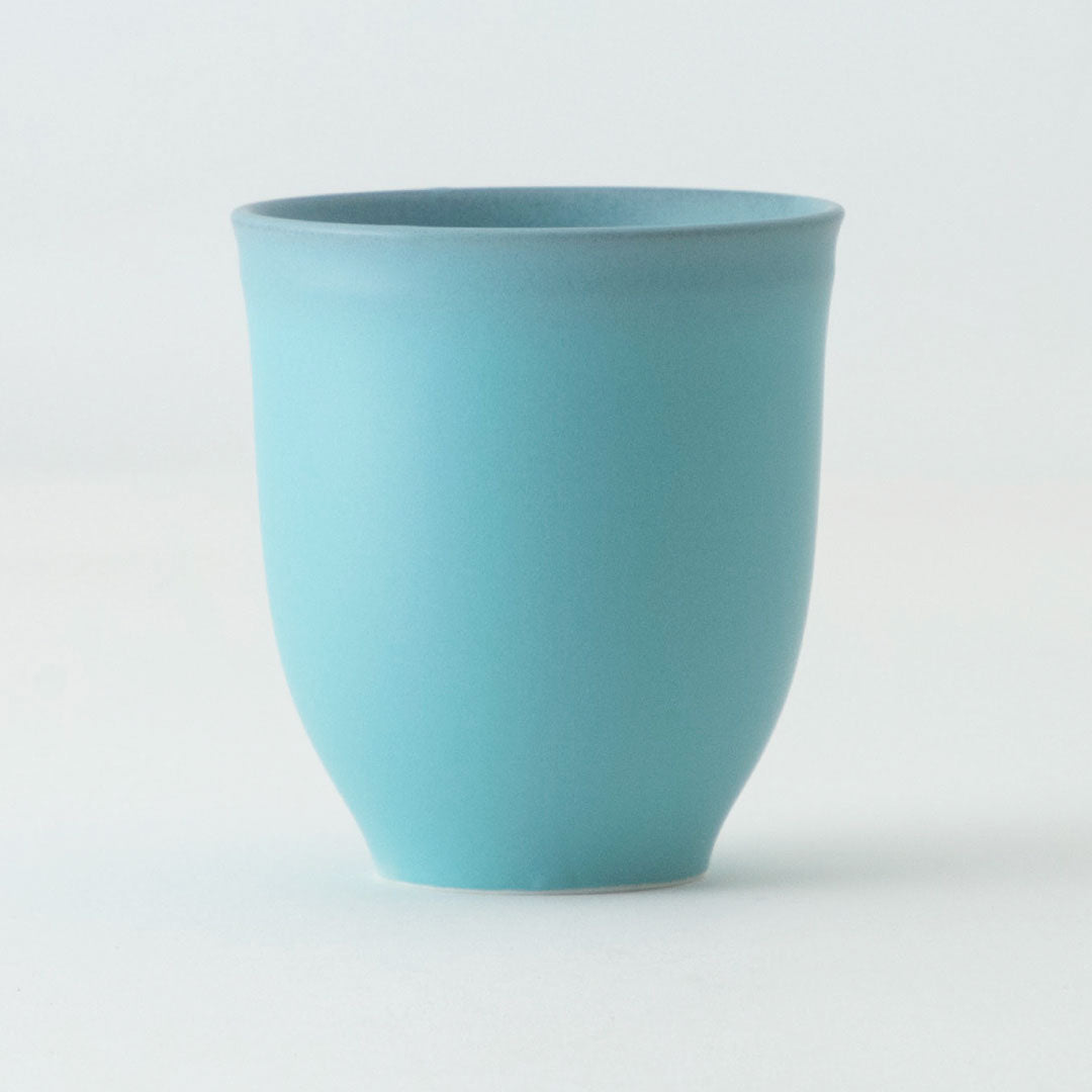 すっきりとした薄い形と、やわらかなマットの青が印象的なシリーズ。落ち着いた色合いが料理をきれいに引き立てます。シンプルながら存在感のある器です。