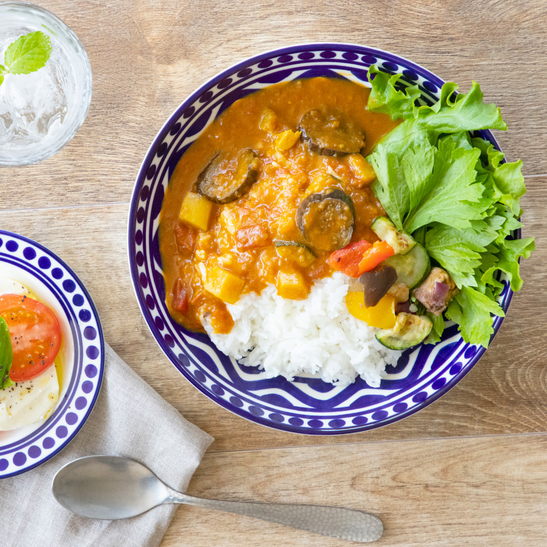 ネイビーブルーで描かれた幾何学文様が印象的なシリーズ。北欧テイストのリズムある模様で、ぐっとお店っぽい雰囲気に🫧カフェ気分の食卓を楽しみたい日に活躍します。