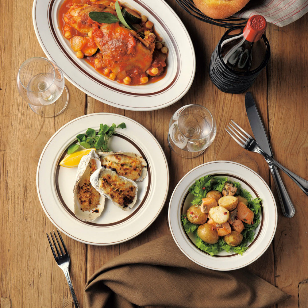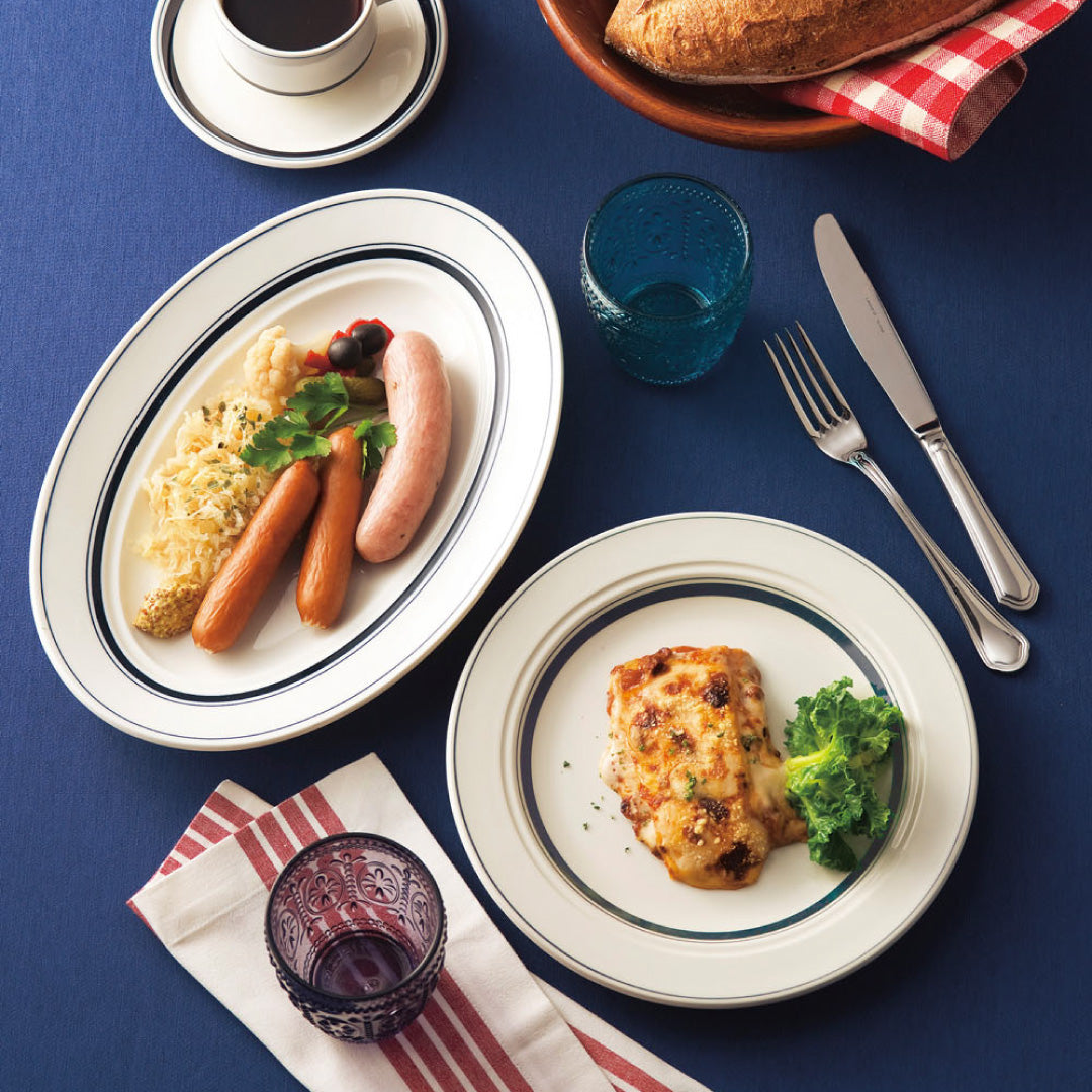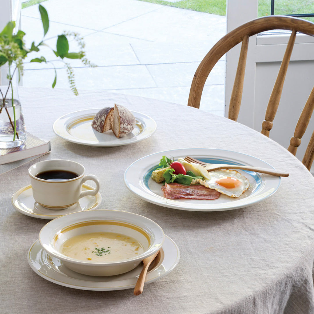 シンプルな形に、ラインのアクセントが効いたシリーズ。ほどよいレトロ感に、アメリカンダイナーを思わせる雰囲気があります🍴気軽に使えて、頼れる一枚です。