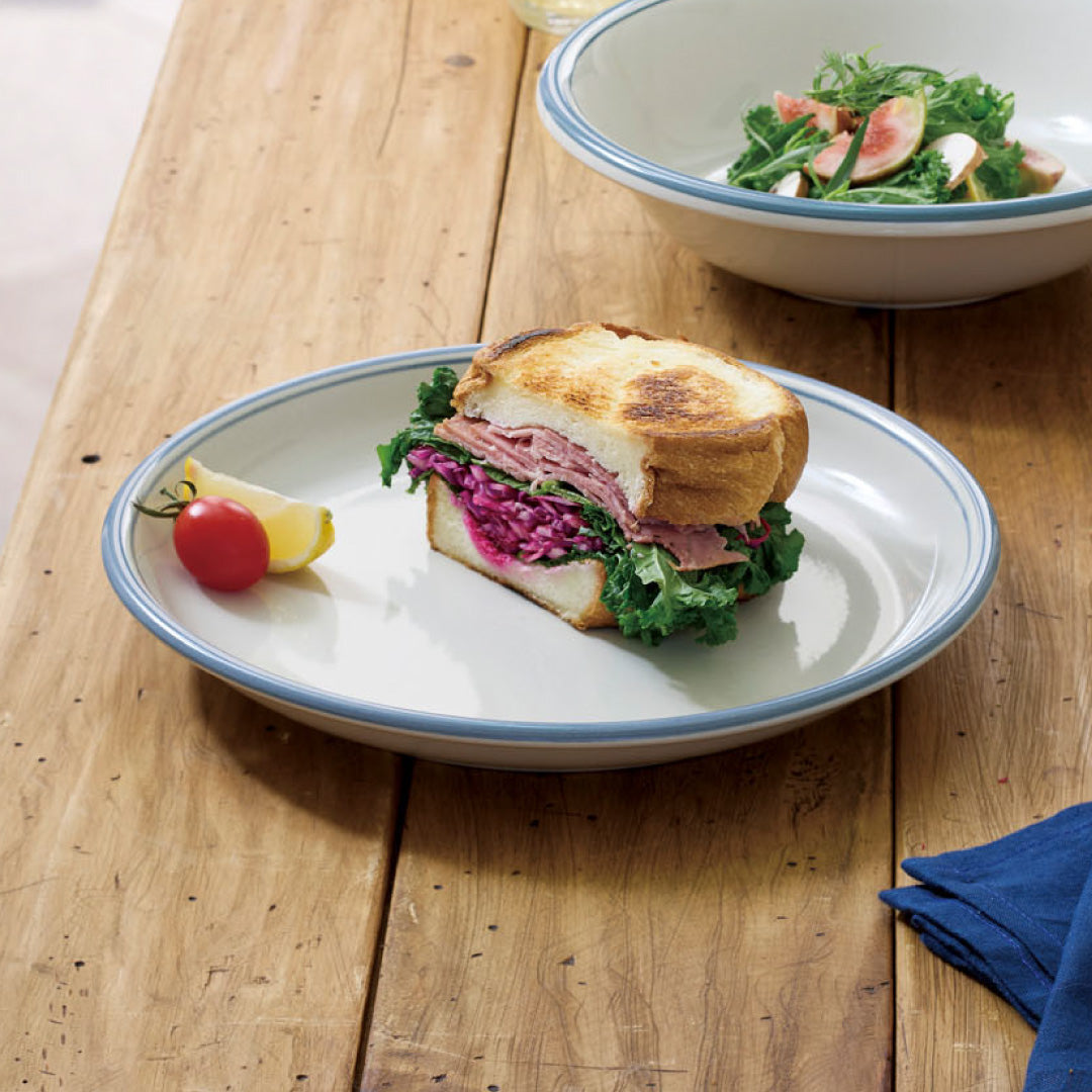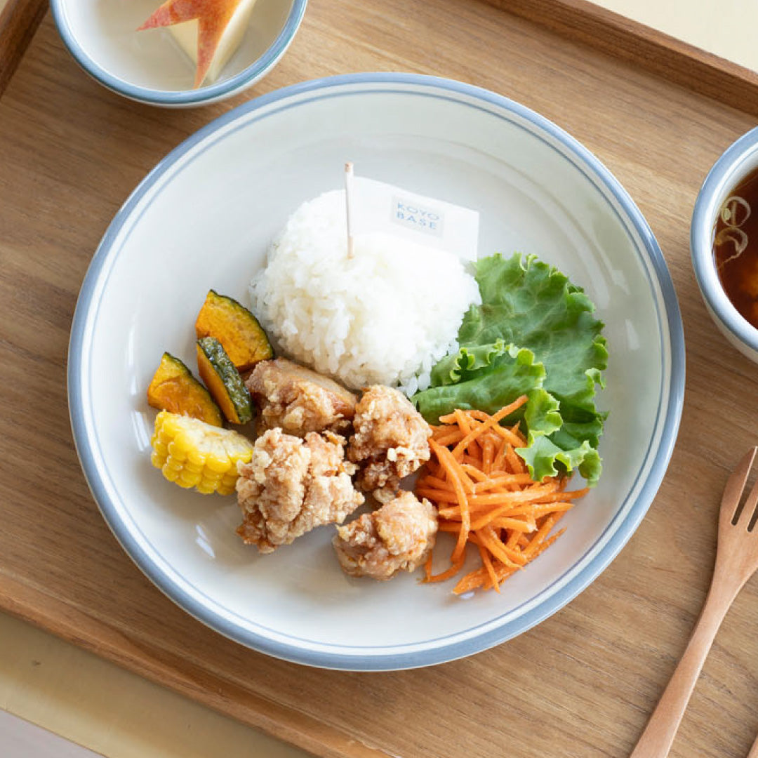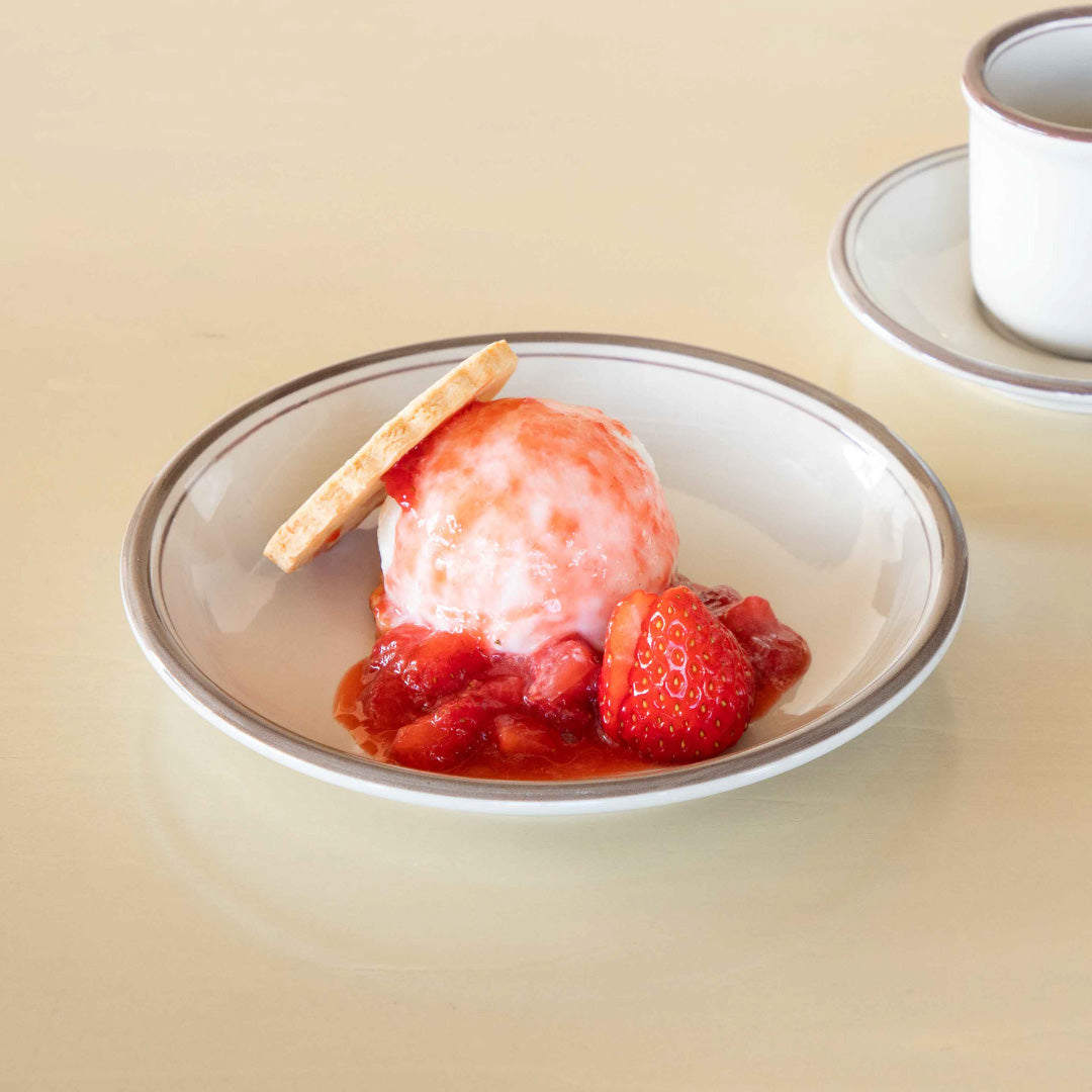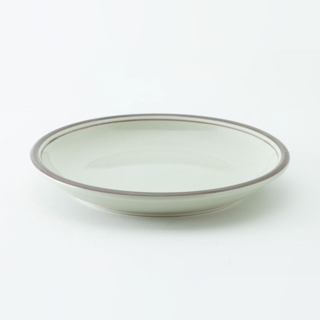 やさしいグレーに、フチの淡いラインがポイント💡ぽってりとした形で使いやすく、どこかレトロなかわいさがあります。毎日のごはんが、さりげなくカフェ気分になる器です。