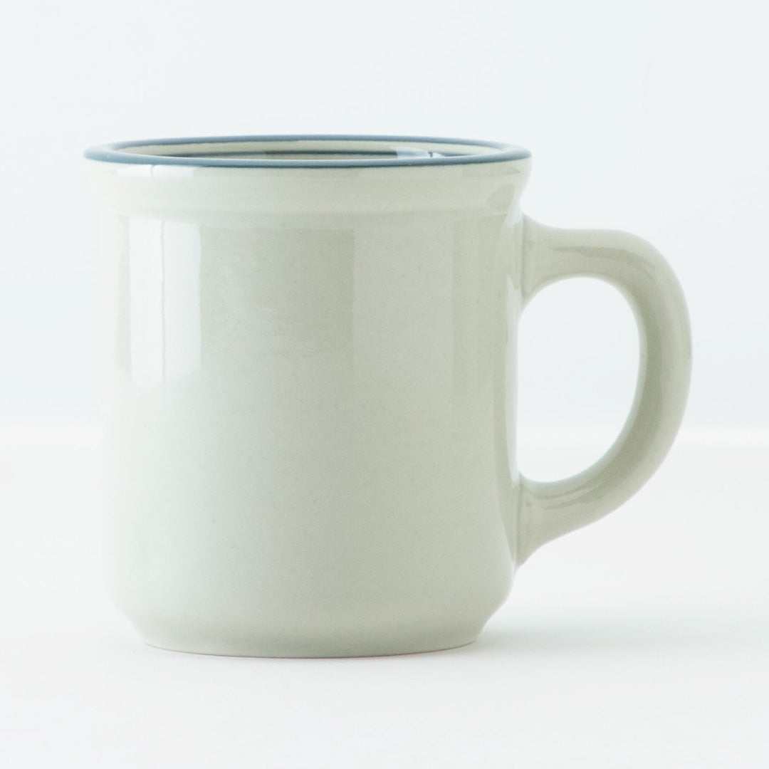 やさしいグレーに、フチの淡いラインがポイント💡ぽってりとした形で使いやすく、どこかレトロなかわいさがあります。毎日のごはんが、さりげなくカフェ気分になる器です。