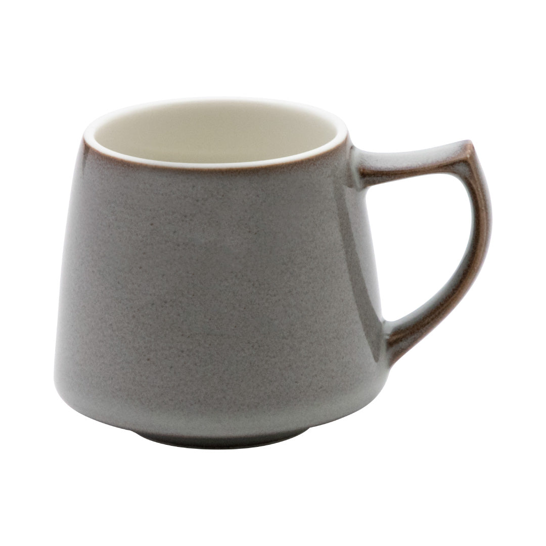 落ち着いた色合いと、すっきりとしたフォルムが印象的なコーヒーカップとソーサー。どこか喫茶店を思わせる雰囲気で、コーヒーがよく似合います。毎日のコーヒータイムにぴったり!