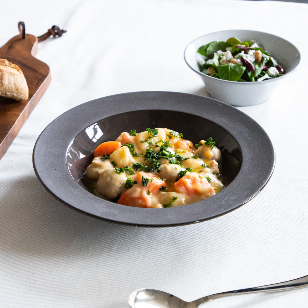 Terreとはフランス語で土地や土を意味します。黒土をそのまま表面に見せたブラックと、乳白の釉薬によってエッジから浮かび上がる土色のラインがアクセント。